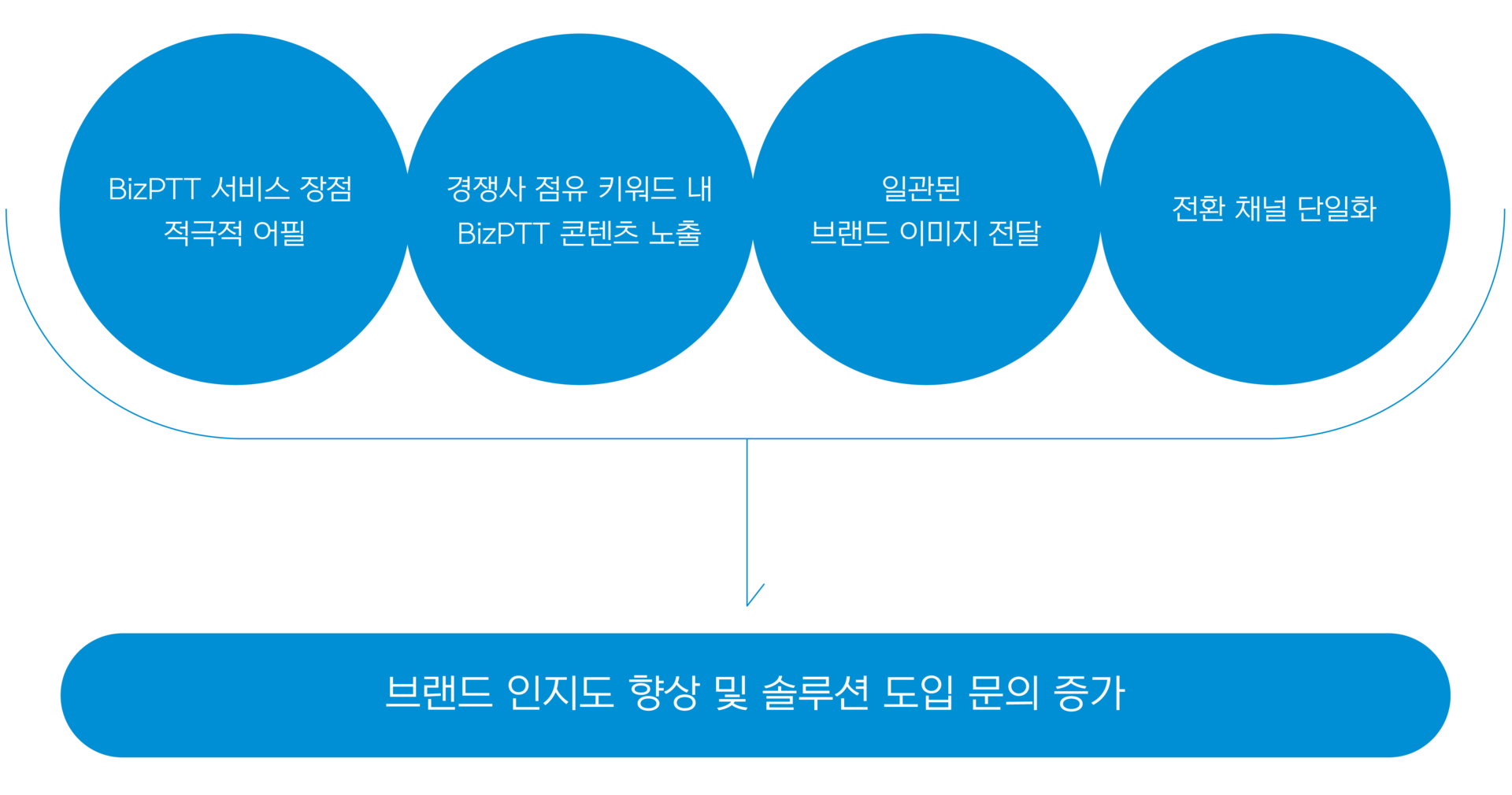 기존 솔루션 대비 손쉬운 도입이 가능하다는 점을 적극적으로 어필할 수 있는 콘텐츠 전략을 수립해 이수시스템의 BizPTT 브랜드의 우수성을 전달하였다. 또한 경쟁사가 점유하고 있는 키워드 등에서 이수시스템의 광고 콘텐츠가 노출될 수 있도록 하여 브랜드 인지도 부족을 해소할 수 있도록 하였다.